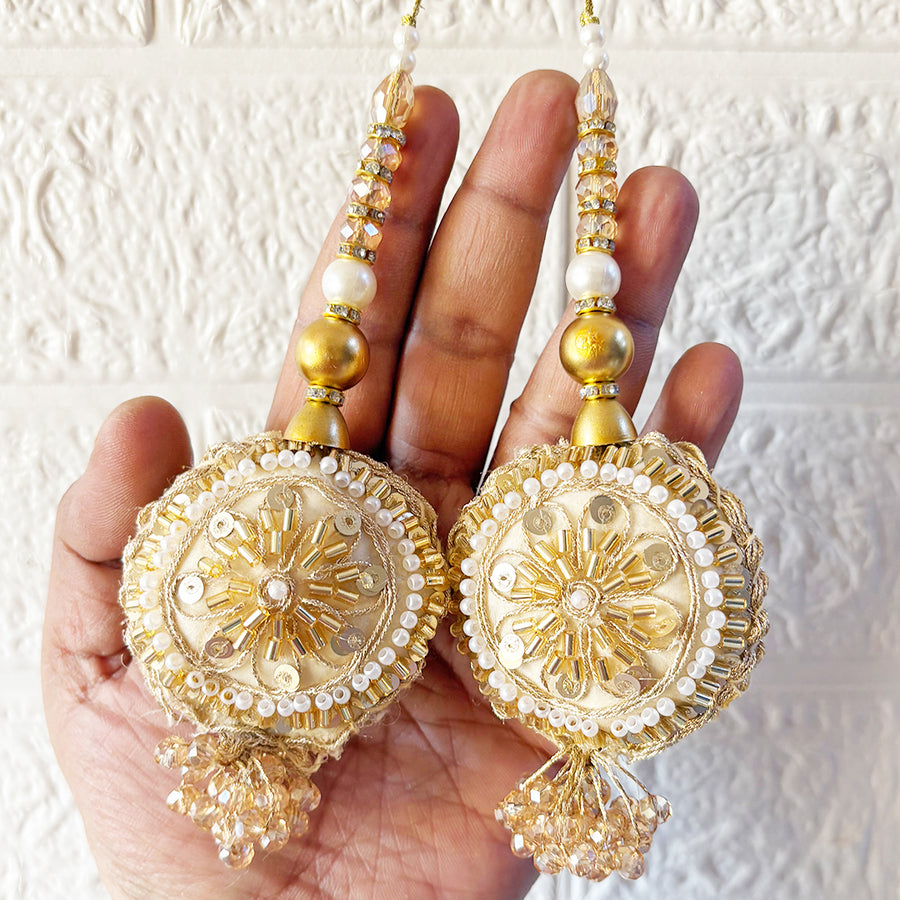 🎀 Decorative Embellishments: Gota lace, kundan stones, foam flowers, shells, tassels, and more for unique creative touches.