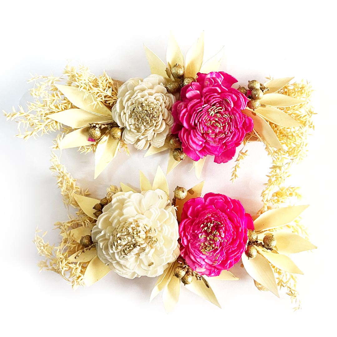 Explore a wide variety of products including artificial flower bunches, colorful crochet threads, wooden miniatures, beaded and Nakshi embroidery patches, appliques, sequins, and other decorative embellishments. Every item is handpicked to support your creative projects—from scrapbooking and festive rangoli to torans, trousseau packing, and wall décor.