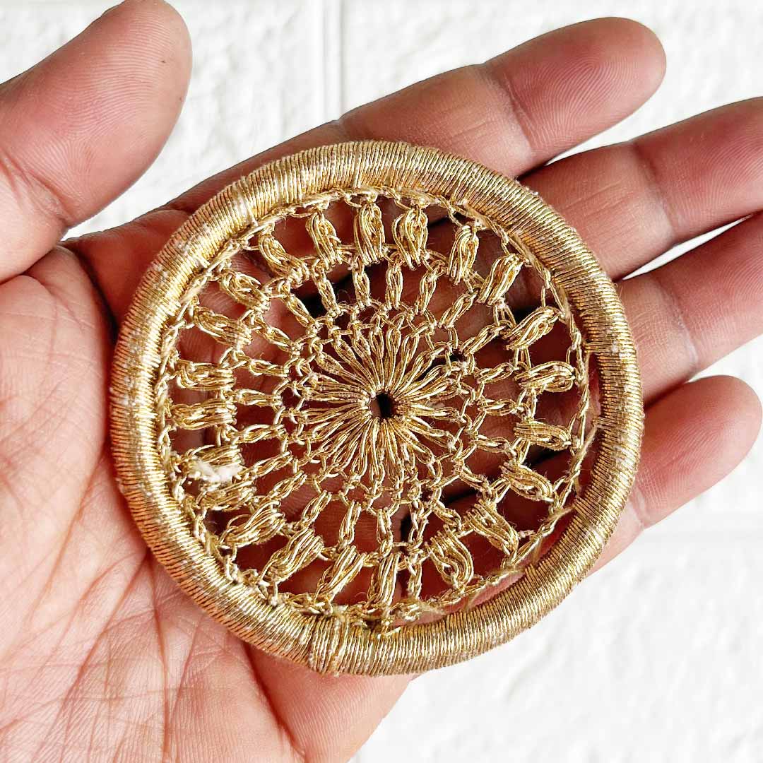 Add a royal and festive flair to your DIY creations with our 3 Inch Golden Zari Crochet Weaving Ring Set of 10 – the perfect base for artistic expression and traditional decoration. Whether you're preparing for a wedding event, festive celebration, or crafting your next masterpiece, these shimmering golden rings are an ideal foundation for countless handmade projects.