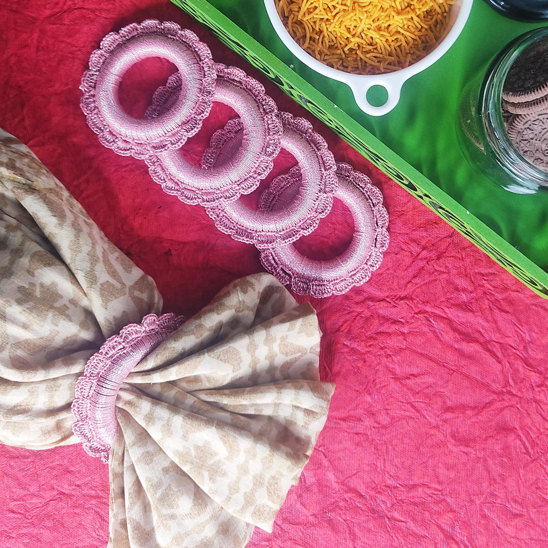 Metallic Pink Colour Hand Weaving Napkin Rings- (Set of 4)