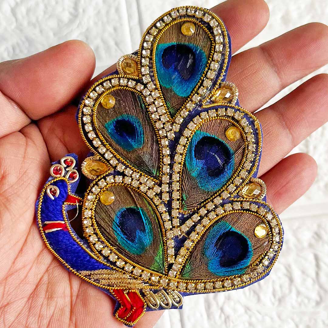 Measuring approximately 5 inches, these large applique patches are ideal for use as decorative bases for tea lights, puja thalis, rangoli designs, torans, or as focal pieces in wall art. They are handcrafted by skilled Indian artisans using quality fabrics, zari threads, sequins, beads, and authentic feathers to ensure durability and artistic richness.