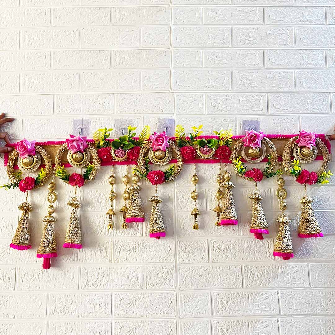 Bring elegance and festivity to your space with the Pink Cone Floral Toran Hanging, a beautifully handcrafted decorative piece designed to enhance the charm of your entrance, mandir, or living area. Torans, also known as Bandhanwars, are traditional Indian door hangings that symbolize positivity, good luck, and prosperity. This exquisite toran combines traditional artistry with modern aesthetics, making it a must-have for festive décor and daily use.