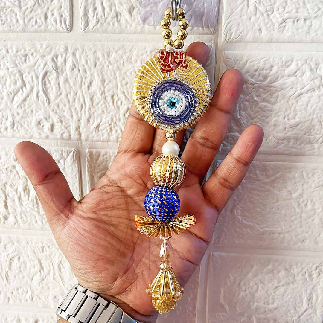 Celebrate the festive spirit while inviting prosperity and positivity with Adikala’s Shubh Labh Door Entrance Decoration Hanging Pair D8. Designed to combine traditional symbolism with exquisite craftsmanship, this hanging set is perfect for Diwali, Navratri, Ganesh Chaturthi, weddings, housewarmings, and other auspicious occasions.